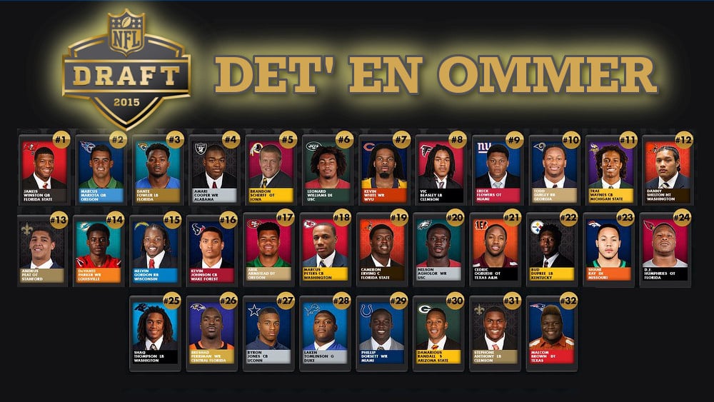 Jameis Winston var ikke valget værd. Kunne han have været det? Muligvis, men ikke med den trænerstab. Offensiv tackle var også et stort need, hvor de kun havde Gosder Cherilus, Demar Dotson og Kevin Pamphile. Det er ikke ligefrem en linje, der får Cam Jordan til at gøre andet end at savle af udsigten til sacks. Men Danielle Hunter var og er bare den bedste spiller fra den her årgang, så Tampa går BPA. Hunter har lavet 276 tackliner og intet mindre end 54,5 sacks med to Pro Bowls og én Second-Team All-Pro til følge siden sit indtog i ligaen.