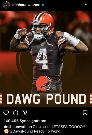 Watson har allerede taget den skridtet videre og lagt et billede af sig selv på instagram med en Browns-trøje på, så mon ikke den er god nok.