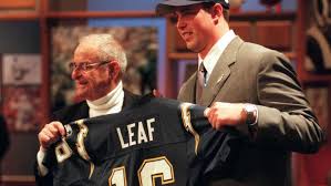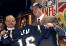 Ryan Leaf var med i opløbet til at blive valgt med førstevalget i 1998 draften, hvor Peyton Manning endte med at blive valgt af Indianapolis Colts og Leaf lige bagefter af San Diego Chargers.
